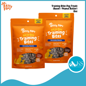 [Exp: 11/07/2025 (mm/dd/yy)] Zesty Paws Training Bites Dog Treats (Peanut Butter / Bacon), 8oz