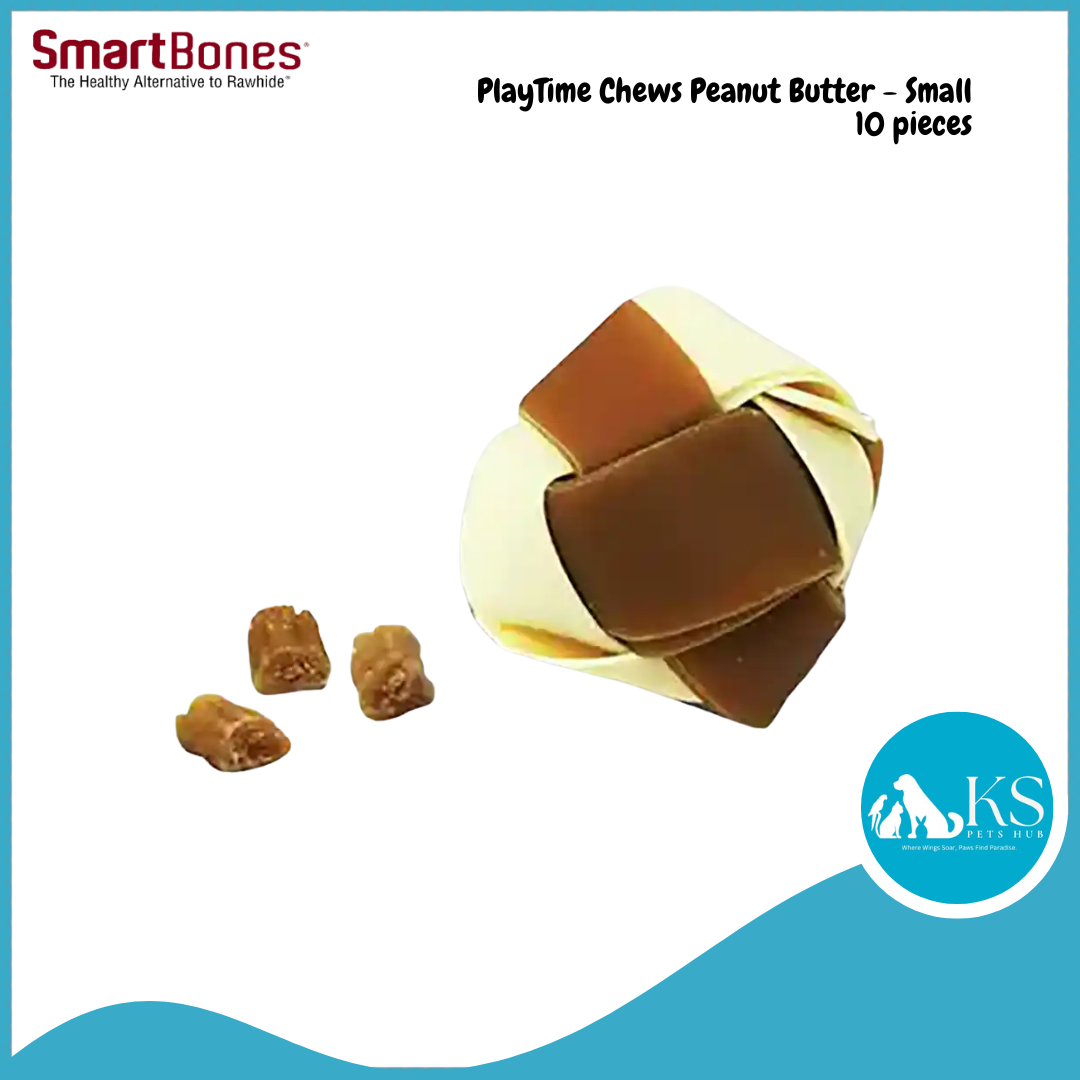 SmartBones® have all the benefits of a rawhide chew…WITHOUT the RAWHIDE! NO RAWHIDE SmartBones® PlayTime Chews are made with REAL PEANUT BUTTER, CHICKEN and wholesome VEGETABLES, and have chicken surprise treats inside for lots of shake, rattle and roll fun play, and a scrumptious taste dogs can’t resist!