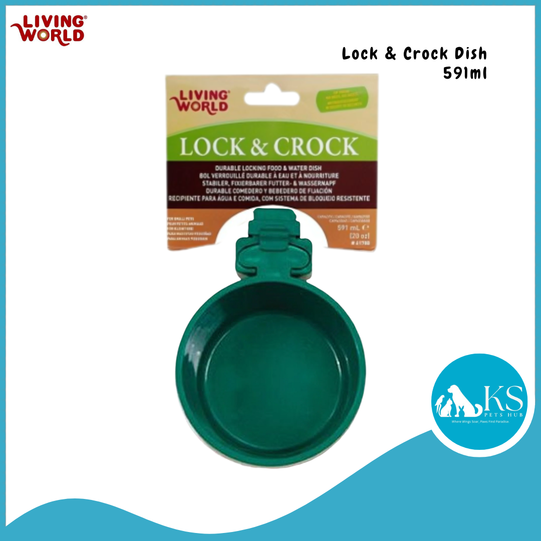 Living World Lock & Crock Dish for small pets offers many great advantages. Made of extra-thick, chew-resistant plastic, the heavy-duty dish is durable, easy to clean, and dishwasher safe. The crock-style dish can easily be attached in an elevated location to any cage wire size and fits vertical or horizontal cage wiring. This is an excellent space-saving alternative to freestanding dishes. Once installed, it will not twist, turn, or tip, eliminating messy food or water spills. The dish can easily be detached for filling or cleaning, simply by sliding the locking device and lifting up the dish. The dish is also suitable for birds.